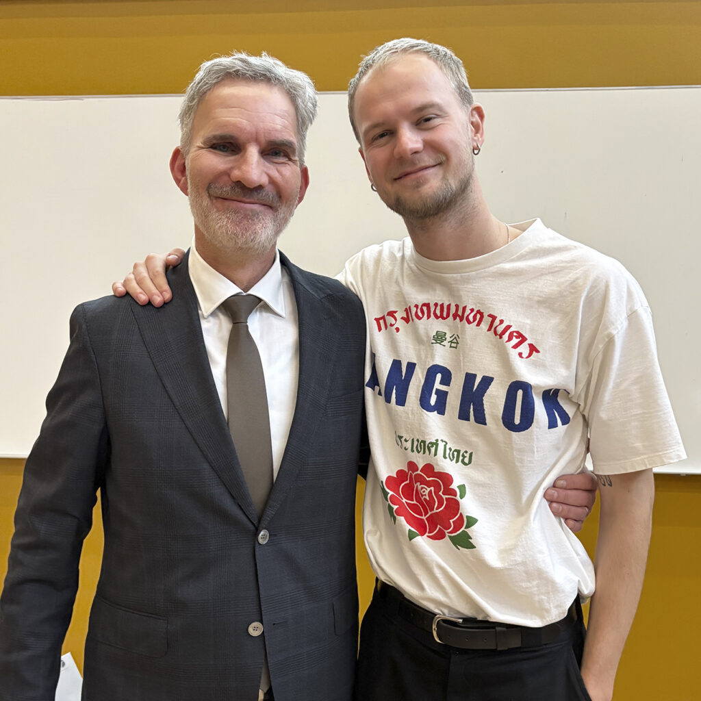 August Vinther (right) together with Søren Pagter after the graduation ceremony at DMJX, January 22, 2026. At the ceremony, August Vinther received the Ritzau Scanpix Prize for best photojournalistic BA-project.Photo: Cecilie RolvungAugust Vinther received the Ritzau Scanpix Prize for his BA-project Drømme som Kvinde, where he follows Olivia before and after a sex change operation in Thailand. Cover photo from the online production: August VintherSome of the graduation photojournalism students after the graduation ceremony. Back from left: Nicolai West, Thea Tønnesvang, Cecilie Rolvung, Sigrid Ellesøe and Signe Lægsgaard. Front from left: Teacher Søren Pagter, Miles Lilley (will graduate this spring) and August Vinther. Not present: Martin Ford, Nichlas Pollier, Nicoline Kjems-Krognos (will graduate this spring) and Kasper Søholt (will graduate this spring). Photo: Julija Stankevičiūtė