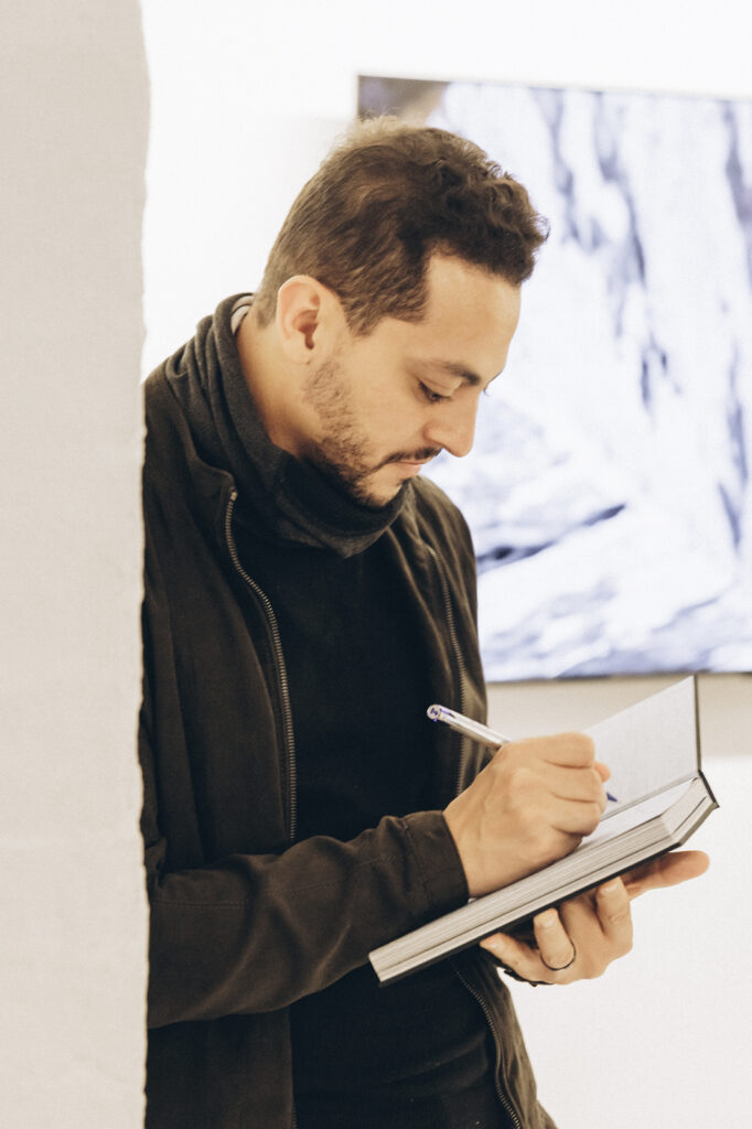 Mohamed Mahdy signing his book for one of the guests during the book launch at Galleri Image.Photo: Hanna Hrynkevich/Galleri Image