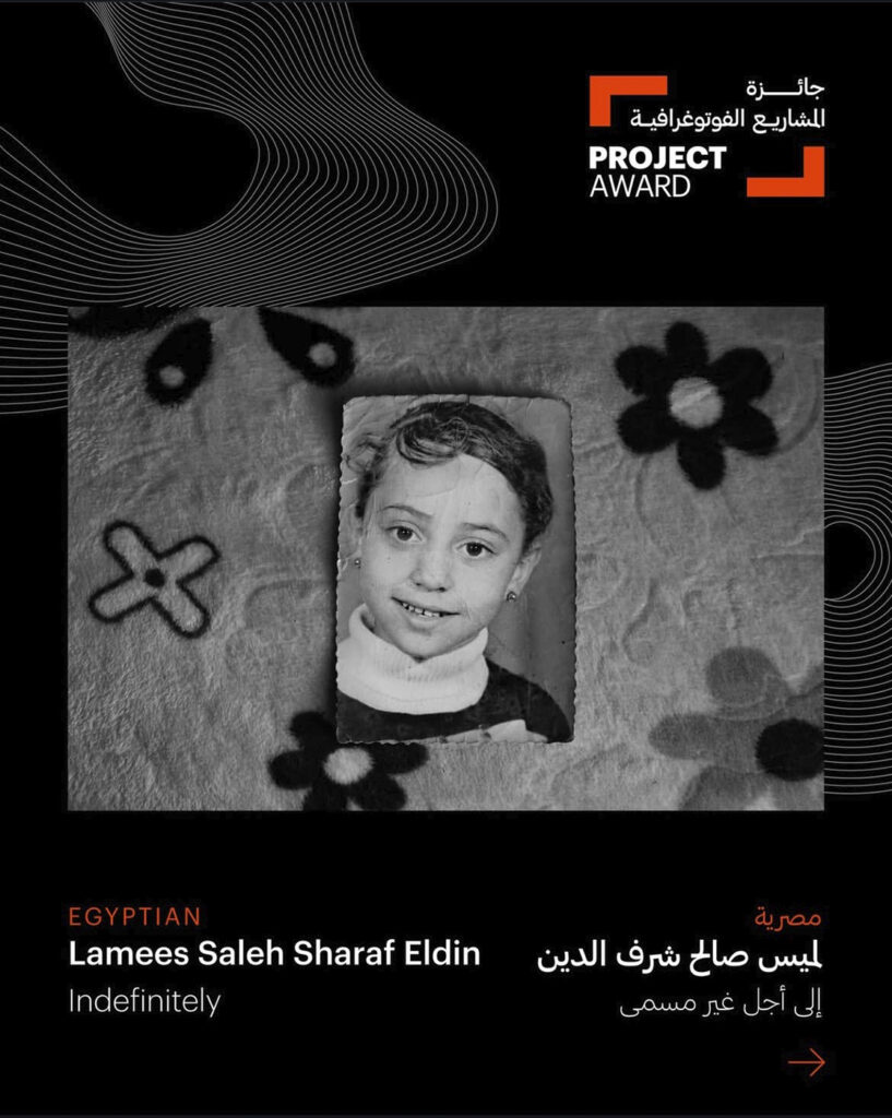 Lamees Saleh Sharf Eldin‘s project Indefinitely has received the Tasweer Project Award and has been exhibited at both LagosPhoto and Image Festival Amman in 2025.